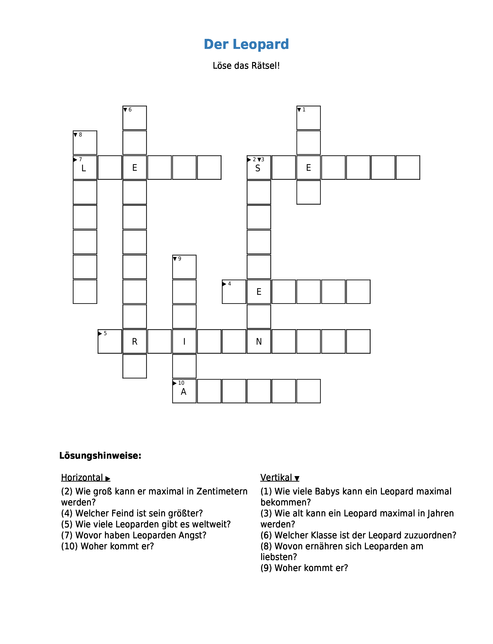 Das Arbeitsblatt Der Leopard ist lizenziert unter einer