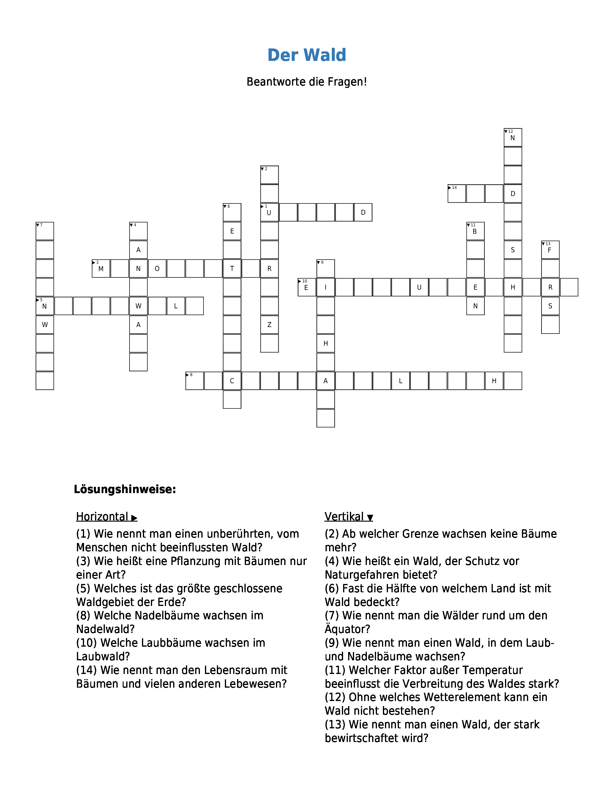 Das Arbeitsblatt Der Wald ist lizenziert unter einer