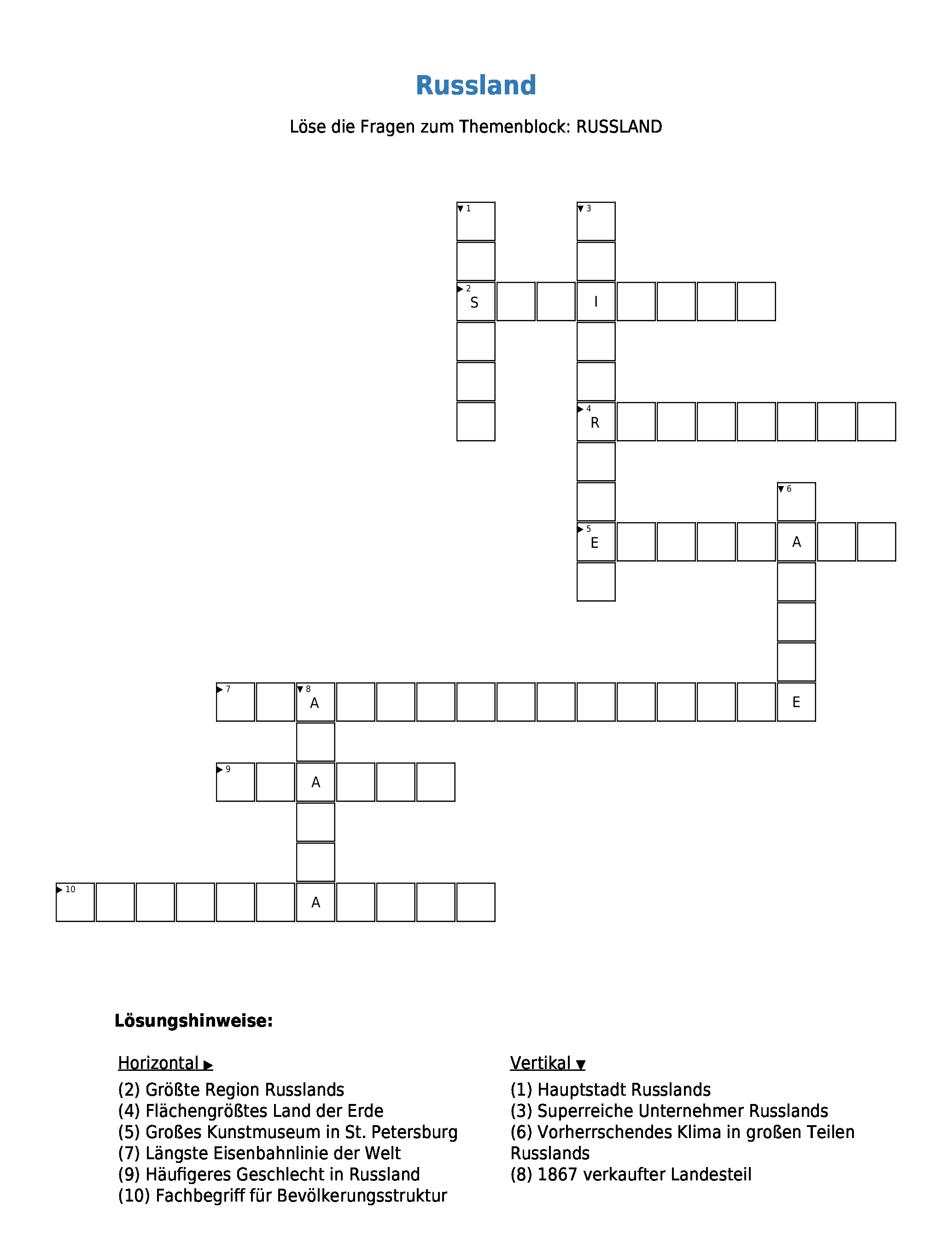 Das Arbeitsblatt Russland ist lizenziert unter einer