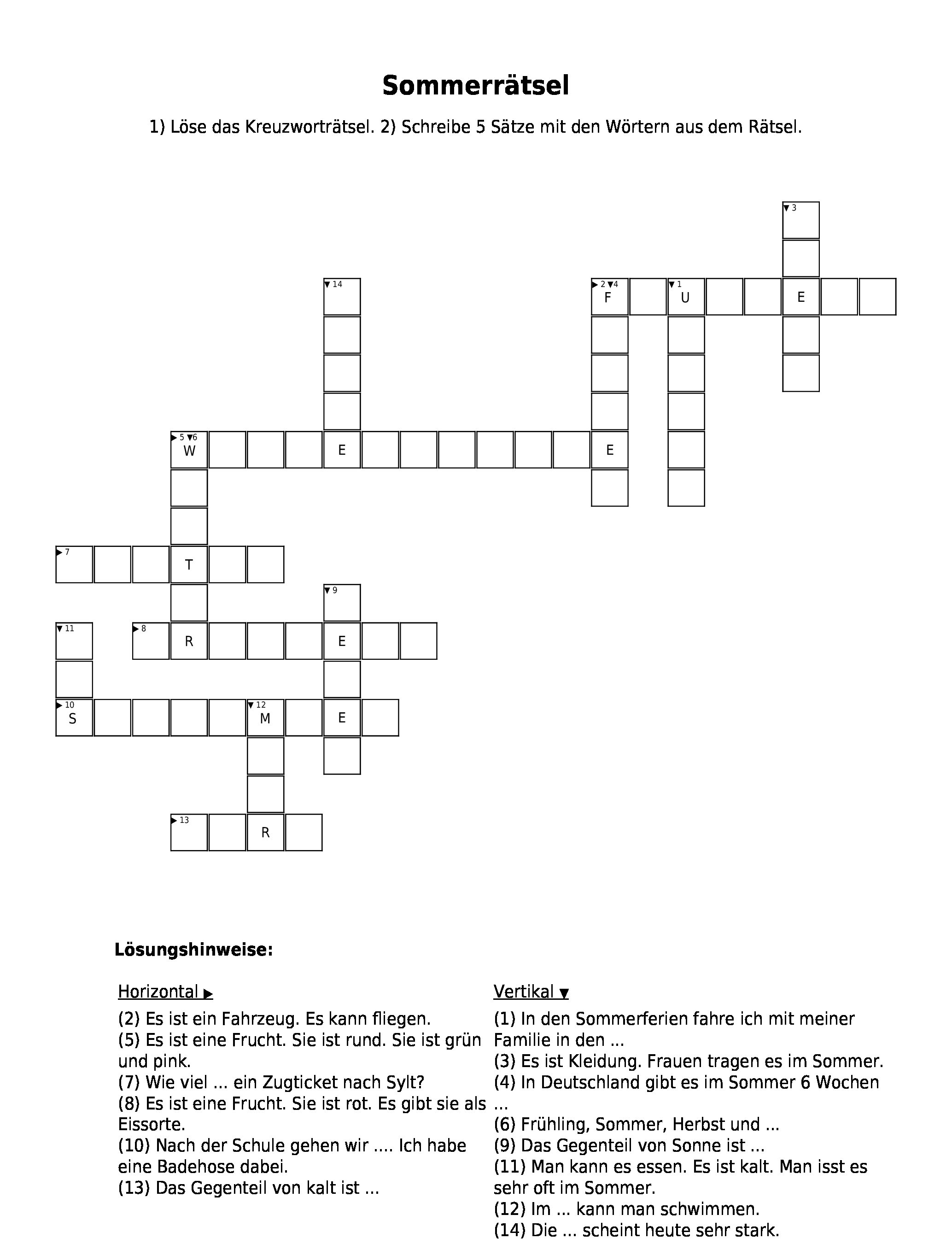 Das Arbeitsblatt Sommerrätsel ist lizenziert unter einer