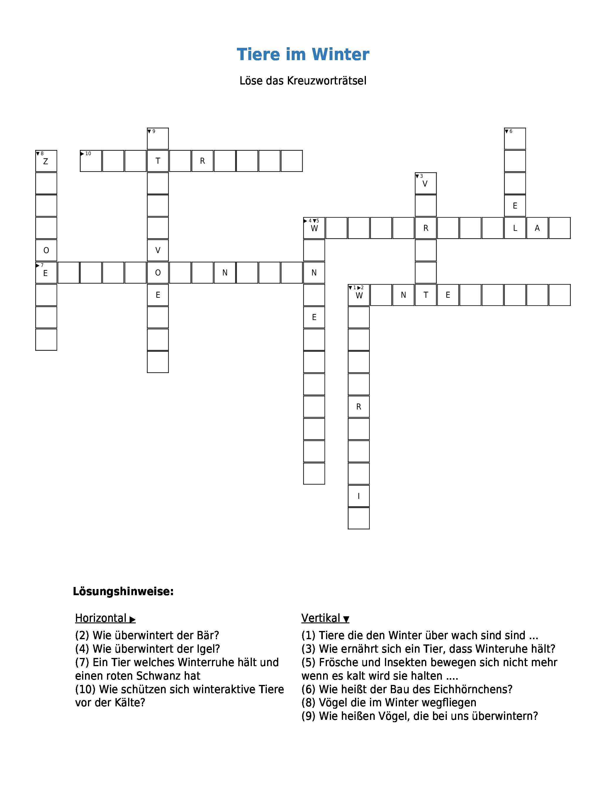 Das Arbeitsblatt Tiere im Winter ist lizenziert unter einer